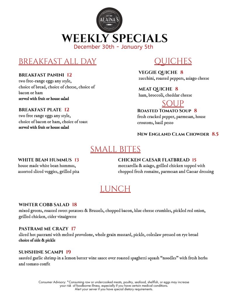 Specials Menu